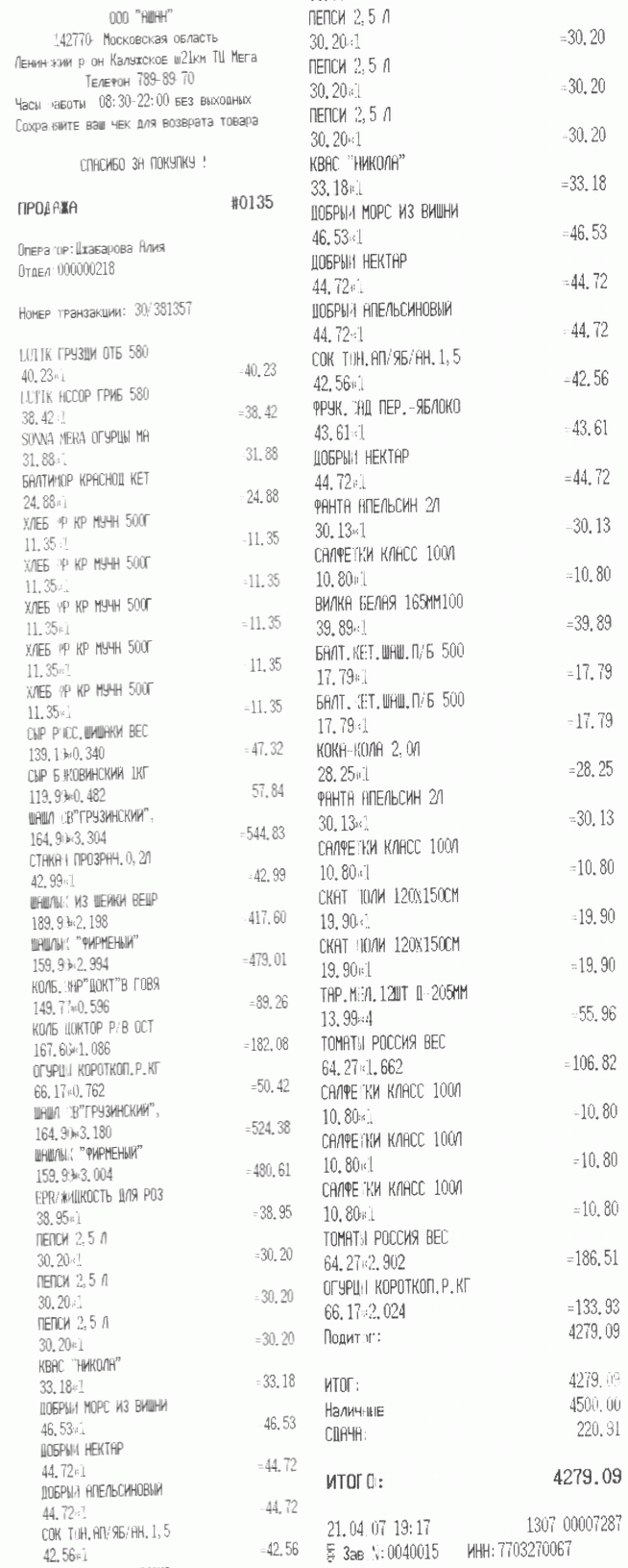 Финансы дело тонкое, поэтому даю отчёт по пейнтбольным расходам/доходам. Итак, согласно утверждённому списку было куплено хавки на 4200 рублей (см. скан чека). Плюс два мешка угля на 200р (это мой взнос). Сдадено участнегами 5200 р. (200 р. с лица). Таким образом в партийной кассе образовалась (5200-4200) 1000 р. Думаю, Сухов придумает куда их деть (за сайт, за клановый-сервер, етс.) Вот.